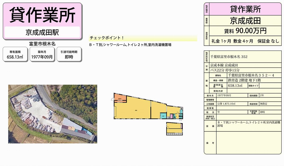千葉県富里市根木名352 (京成成田) 京成成田 貸倉庫 詳細データ