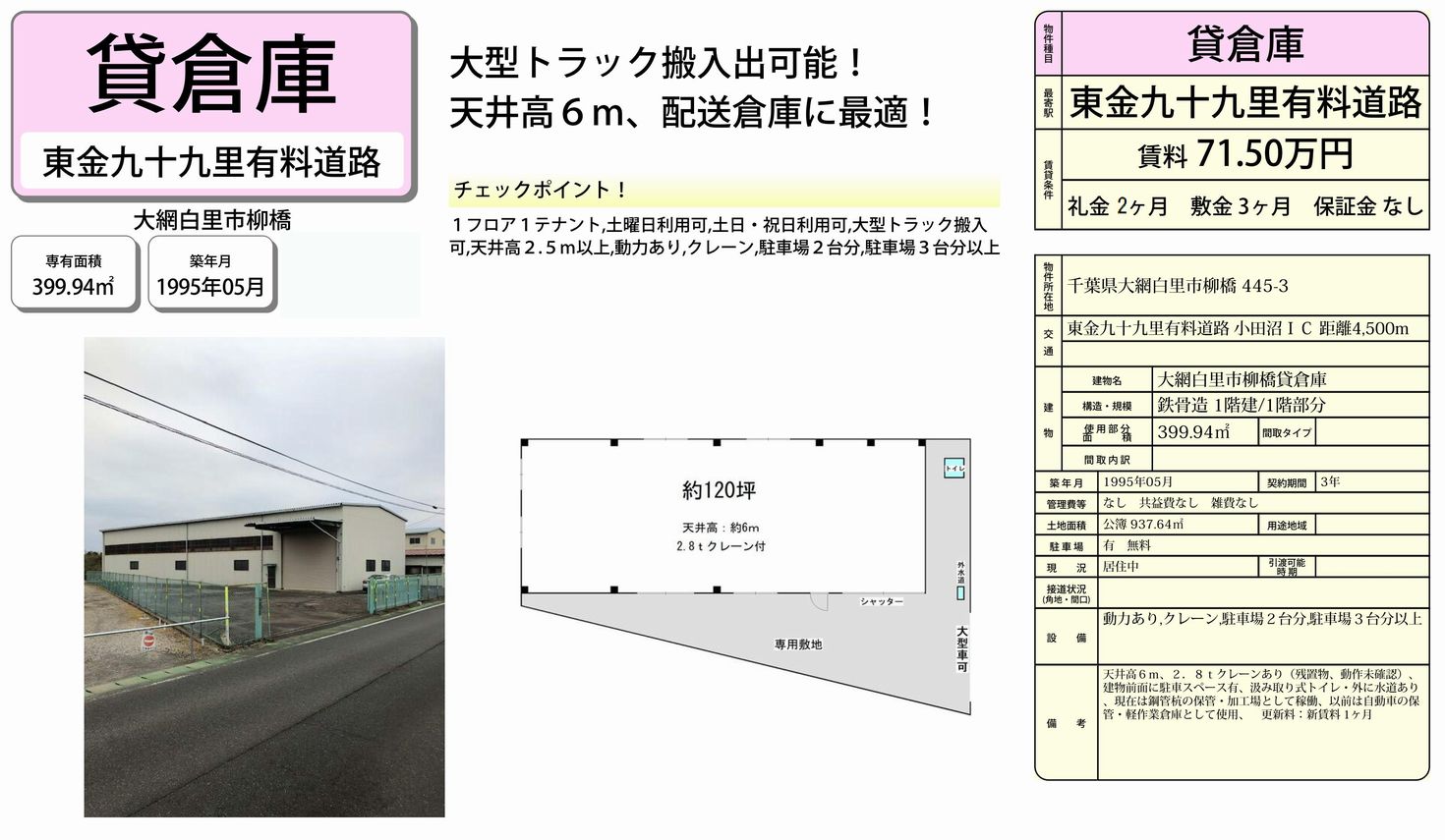 千葉県大網白里市柳橋445-3 (大網) 柳橋貸倉庫 詳細データ