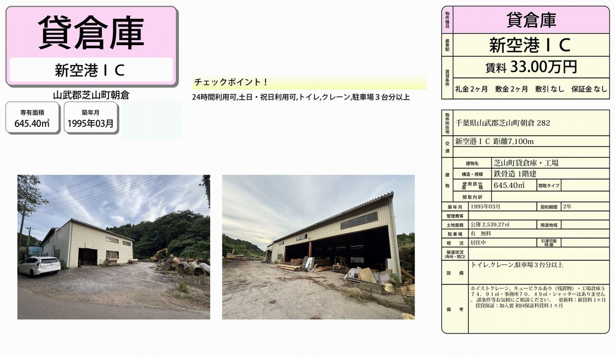 千葉県山武郡芝山町朝倉282 (松尾) 松尾 貸倉庫 詳細データ