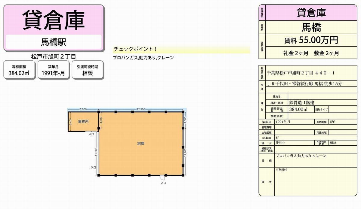 千葉県松戸市旭町2-440-1 (馬橋) 馬橋 貸倉庫 詳細データ