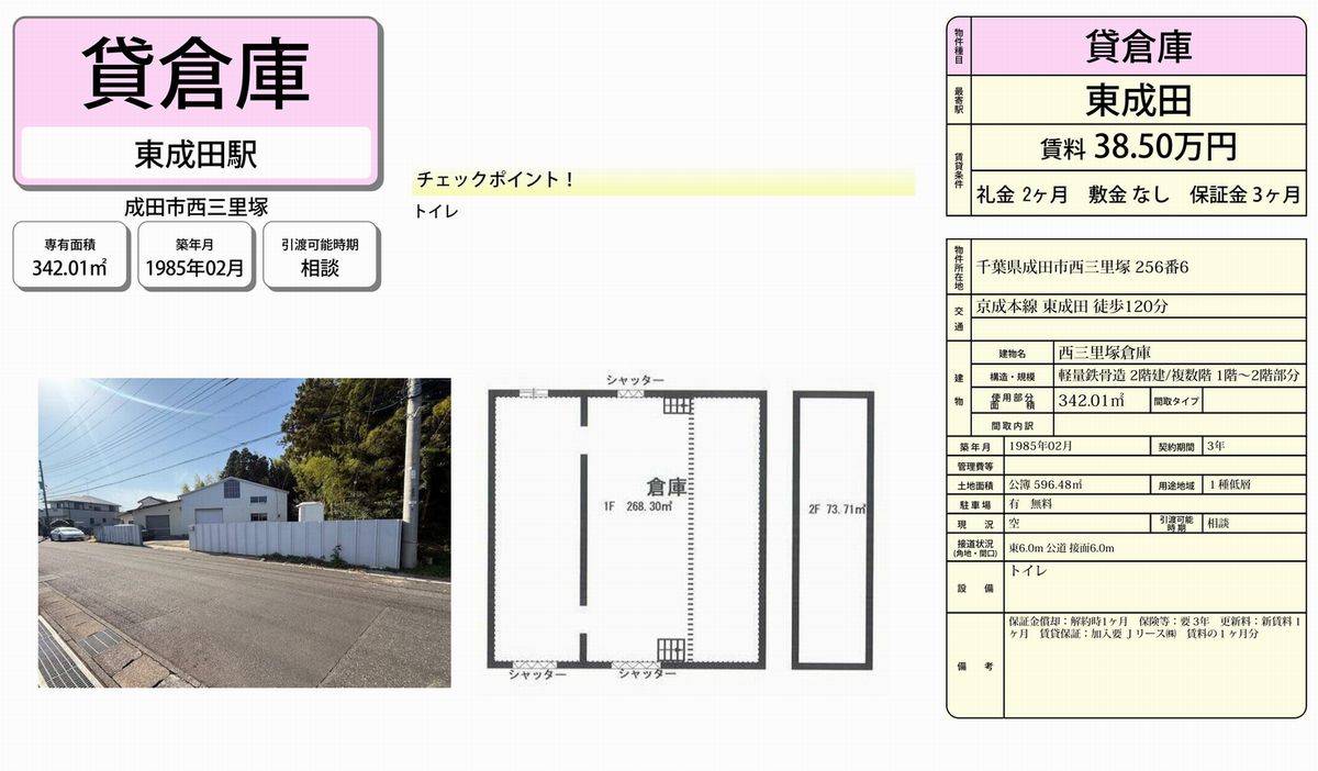 千葉県成田市西三里塚256-6 (東成田) 西三里塚倉庫 詳細データ