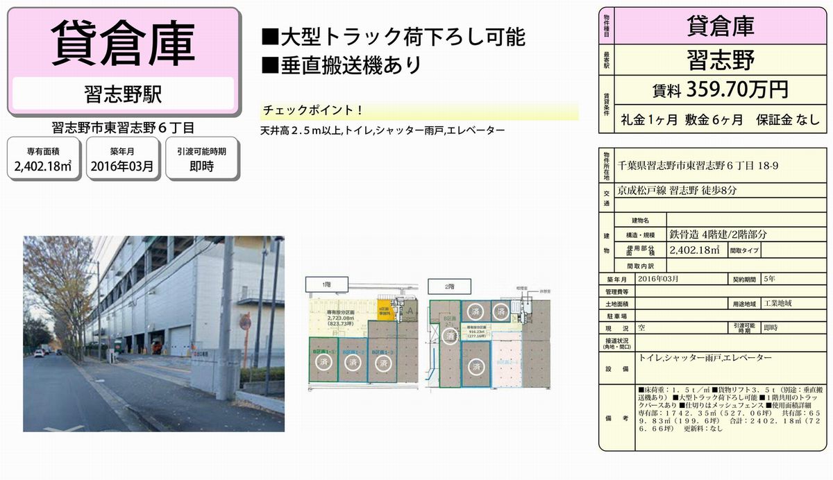 千葉県習志野市東習志野6-18-9 (習志野) 習志野 貸倉庫 詳細データ