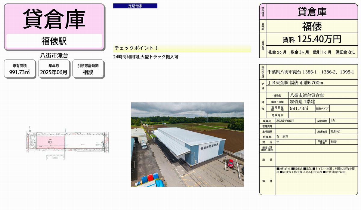千葉県八街市滝台1386-1 (福俵) 福俵 貸倉庫 詳細データ