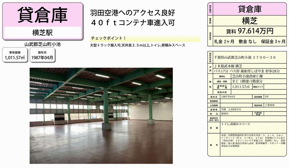 千葉県山武郡芝山町小池2700-36 (横芝) 小池倉庫C棟 詳細データ
