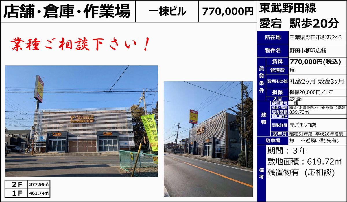 | 備考 | 元パチンコ店 近隣Pあり |