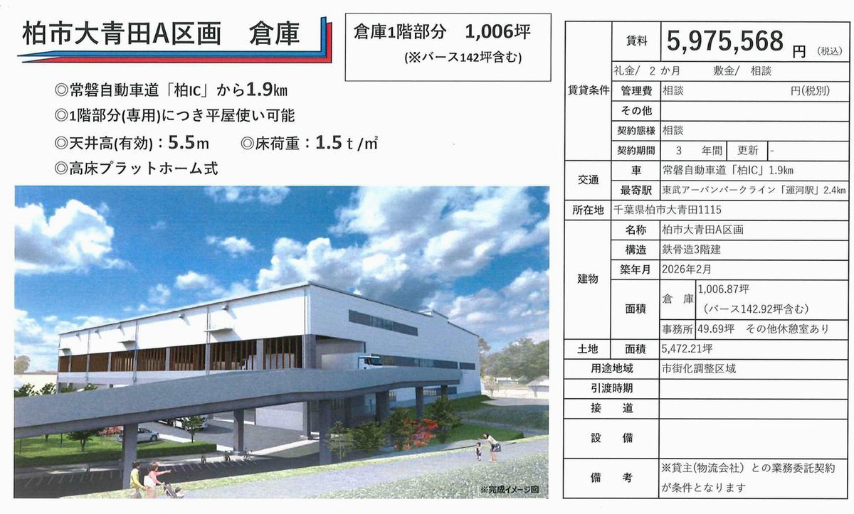 千葉県柏市大青田1115 (運河) 運河 貸倉庫 詳細データ