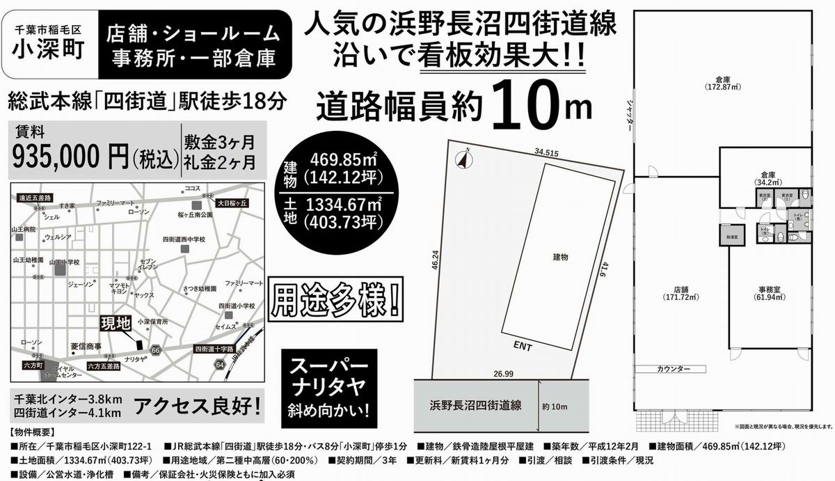 千葉県千葉市稲毛区小深町122-1 (四街道) 四街道 貸倉庫 詳細データ