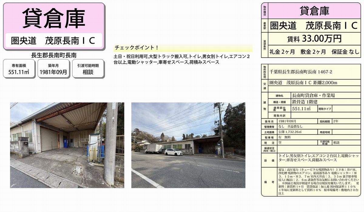 千葉県長生郡長南町長南1467-2 (新茂原) 新茂原 貸倉庫 詳細データ